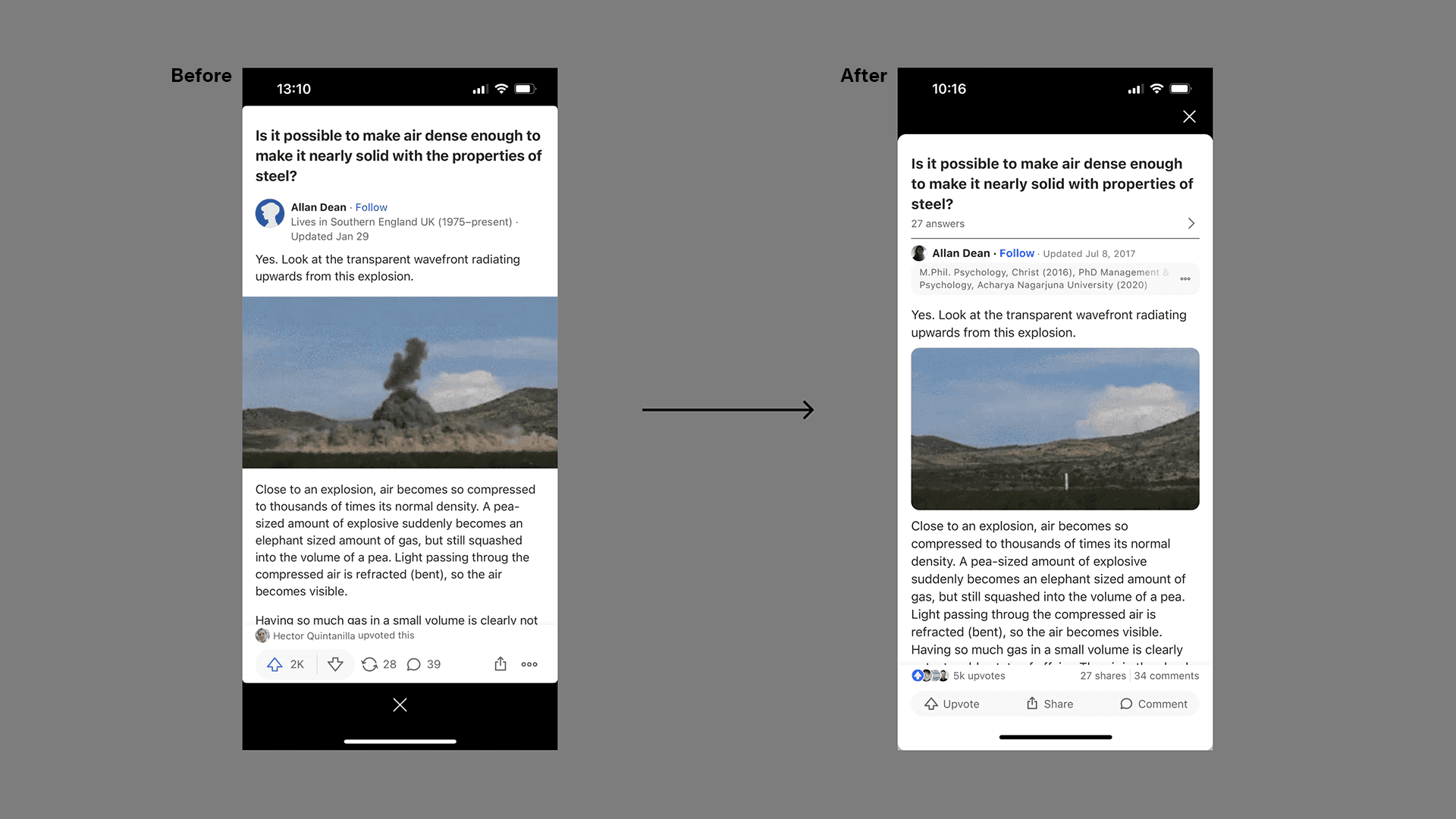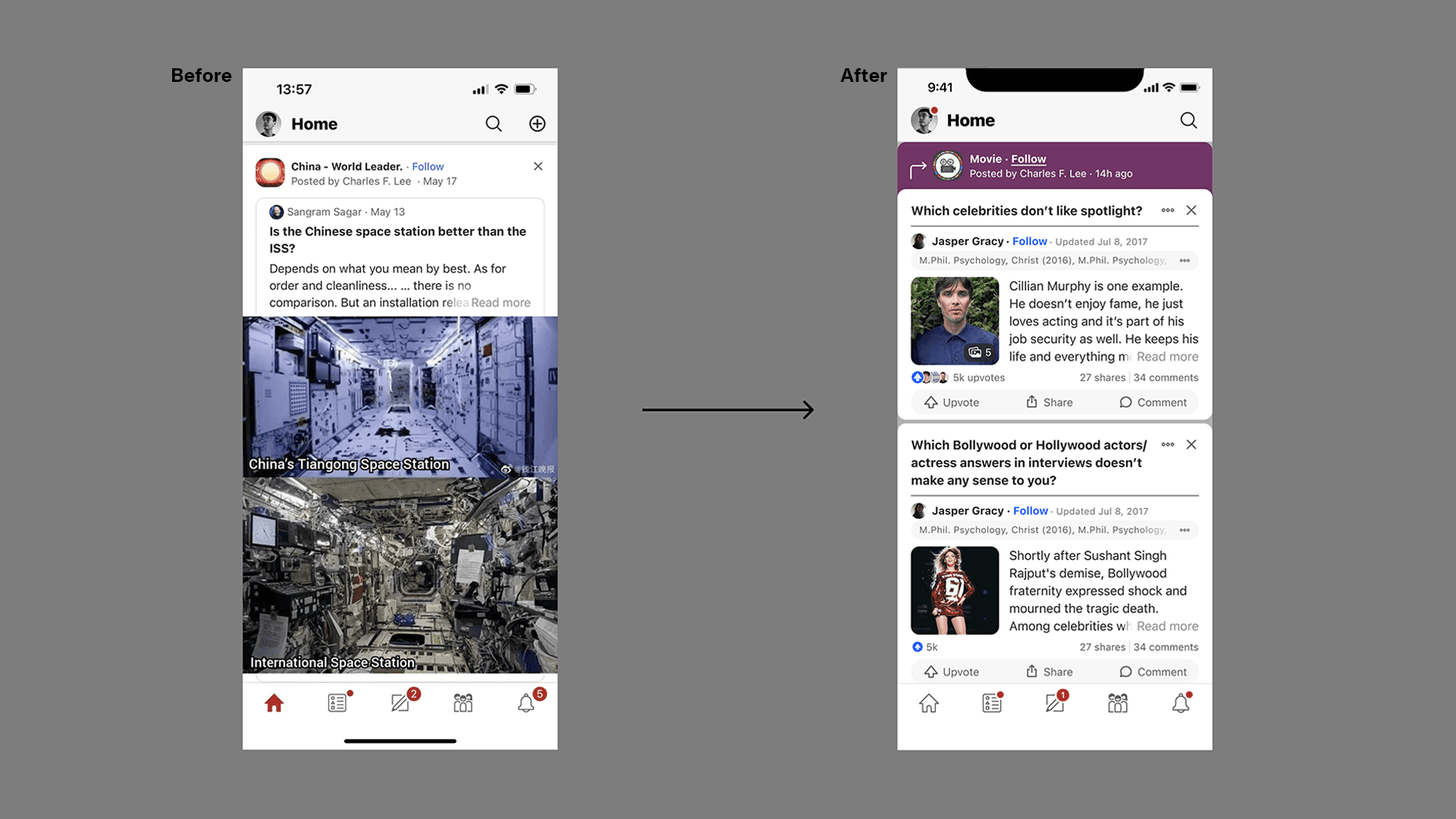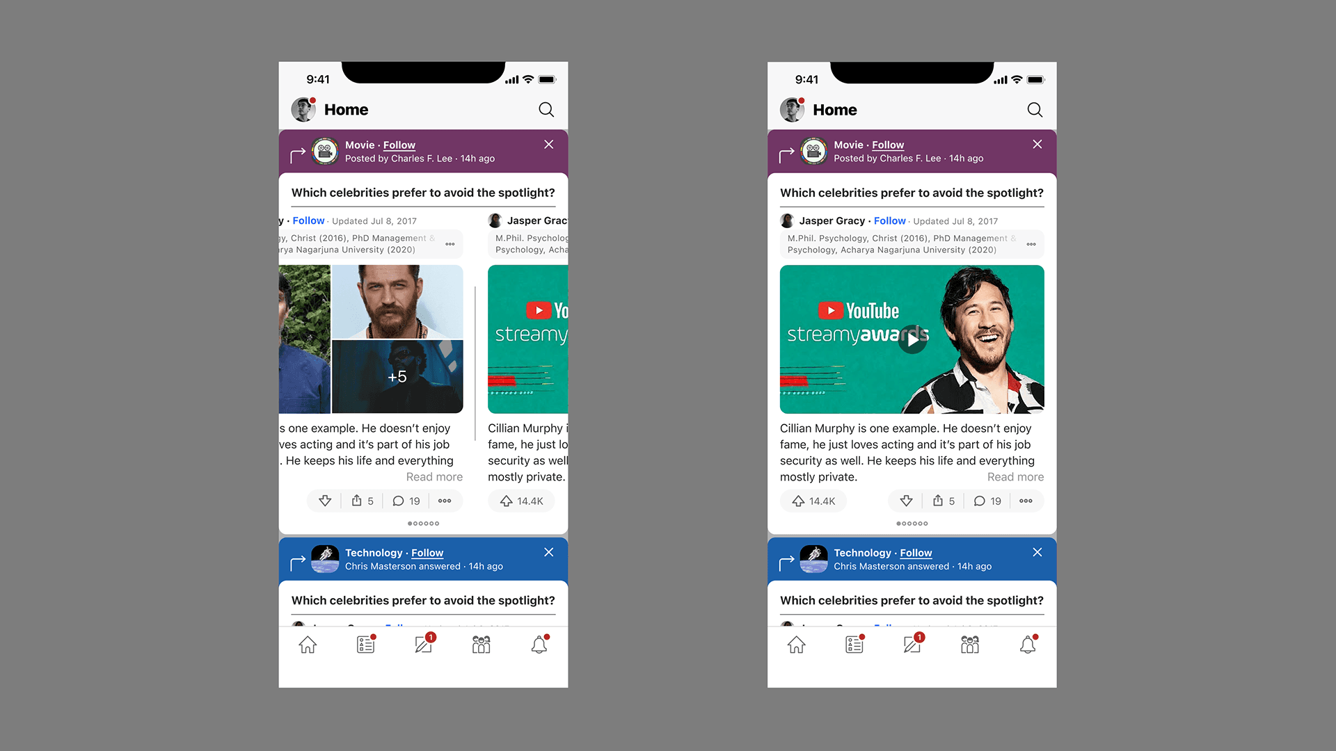 Quora feed UX redesign for mobile: