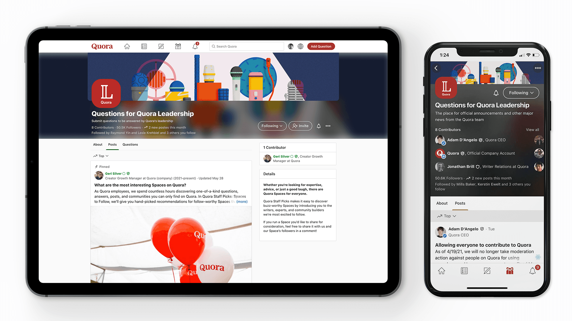 Quora owned Spaces’ banner and identity design.