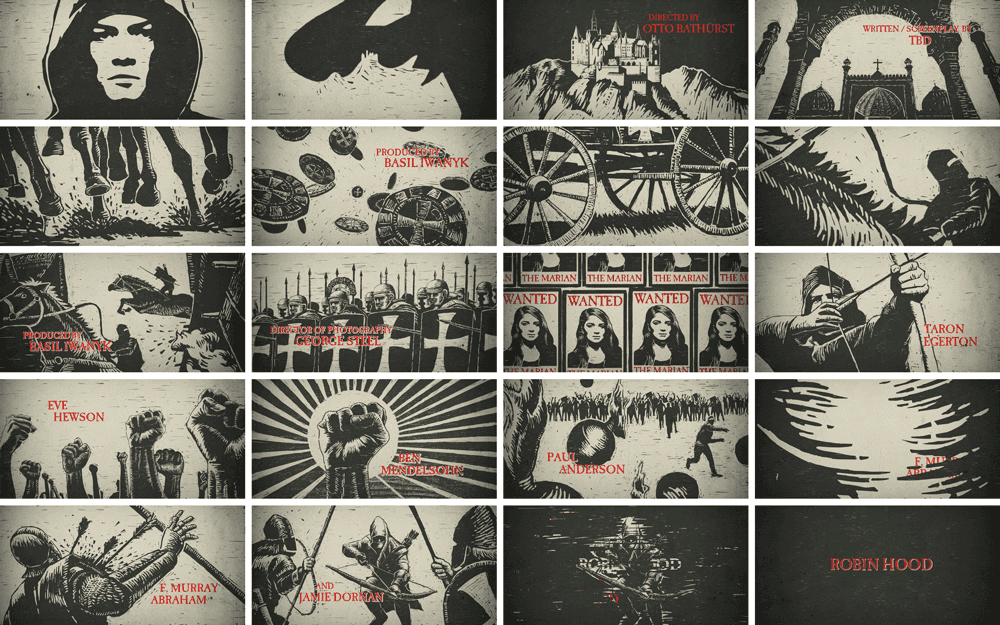 Style frames designed for film Robin Hood (2018) main on end title sequence.
